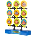 Apri il torneo di tiro al bersaglio! Carica il blaster con una pallina frontalmente, arma la pompa e abbatte il bersaglio con il punteggio più alto. Nove bersagli ribaltabili con valori (10–100) si capovolgono al colpo, così vedi subito quanti punti ottieni. Le morbide palline in foam sono delicate sui mobili e sicure per il gioco in casa e all’aperto.