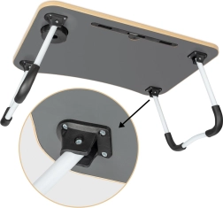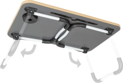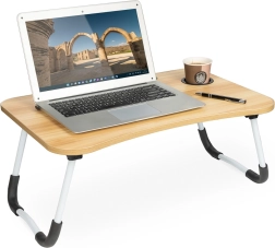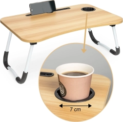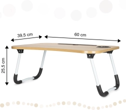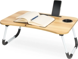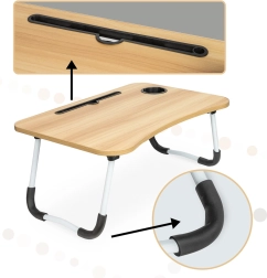 Tavolino pieghevole portatile per notebook è l'assistente ideale per lavorare comodamente dal letto o dal divano. È dotato di uno slot per il dispositivo e di un portabicchieri, garantendo il massimo comfort.