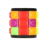 Un divertente e intelligente rompicapo logico a forma di cilindro con tre file che piacerà a bambini e adulti. Gli anelli rotanti e lo spazio libero consentono di spostare i pezzi colorati e di allineare i colori nell’ordine corretto. Ottimo per allenare pazienza, concentrazione e motricità fine. Ideale come rompicapo tascabile per viaggi, scuola e ufficio. Cilindro rotante, 3 file, sviluppo della logica, divertimento antistress.