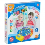 Accendi il laghetto rotante, prepara le canne e inizia a pescare! Durante la rotazione i pesci aprono e chiudono a turno la bocca, quindi servono tempismo preciso e abilità. Il gioco è ideale per 1–4 giocatori e, grazie alla musica allegra e ai colori vivaci, i bambini se ne innamoreranno subito.