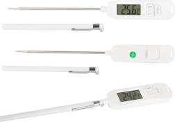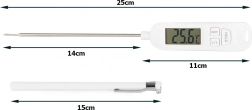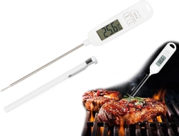 Il termometro da cucina digitale è uno strumento indispensabile per ogni cuoco. La sua sonda in acciaio inossidabile garantisce lunga durata e precisione nelle misurazioni. È molto semplice da utilizzare e grazie al display confortevole è facile rilevare la temperatura attuale. Questo termometro è adatto per controllare la temperatura non solo della carne, ma anche di liquidi, oli e aria.