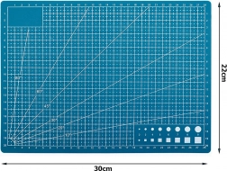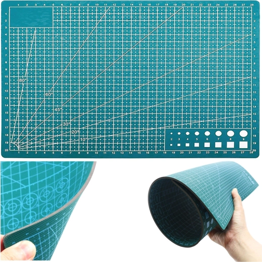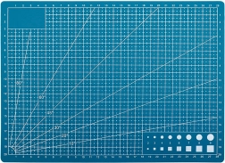La stampa su entrambi i lati con una griglia metrica ben leggibile, marcature di goniometro e figure ausiliarie accelera il tracciamento preciso e il taglio. Grazie allo spessore di 3 mm il tappetino è stabile e ammortizza la pressione, così si ottengono tagli dritti e puliti senza sbavature.