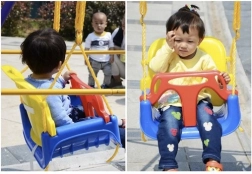 Questa altalena colorata 3 in 1 è una scelta eccellente per bimbi piccoli e più grandi. Nella configurazione con T‑bar e schienale alto trasporta in sicurezza i più piccoli; in seguito è possibile rimuovere le parti anteriore e posteriore e trasformarla in una seduta classica. Le cinghie di sicurezza regolabili tengono il bambino ben saldo, mentre la struttura antiscivolo della seduta impedisce lo scivolamento anche durante il gioco più vivace.