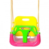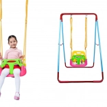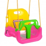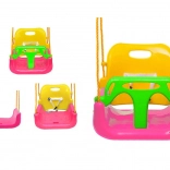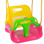 Seduta completa con schienale e barra anteriore per i più piccoli, variante con schienale per i bambini più grandi e altalena classica senza schienale per i più grandicelli: tutto in uno.