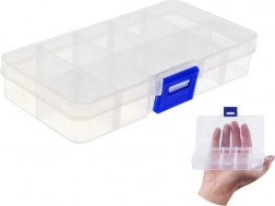 Pratico organizer espandibile fino a 10 scomparti per mantenere in ordine viti, farmaci, gioielli o perline. Grazie al coperchio trasparente hai sempre tutto sotto controllo e la clip robusta impedisce aperture accidentali durante il trasporto.