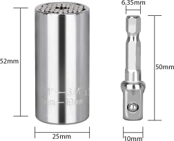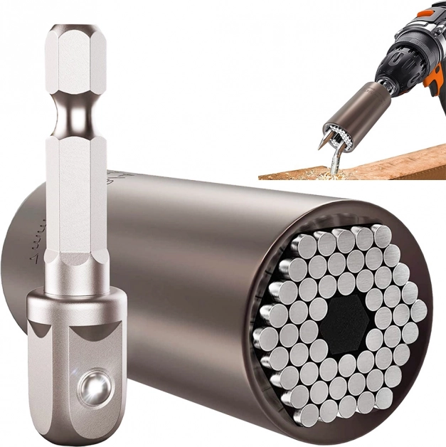 Incluso un pratico adattatore con esagono da 1/4'', così puoi collegare la bussola ad avvitatore a batteria o trapano, e anche al cricchetto standard. La sostituzione è immediata e il lavoro procede veloce.