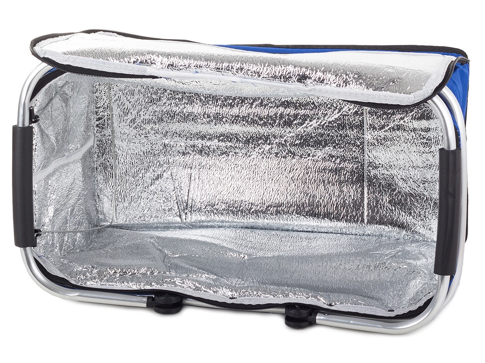 Pratico e leggero cestino da picnic con telaio in alluminio e strato termico isolante che mantiene cibi e bevande freschi più a lungo. Grazie alla chiusura con cerniera, ai manici pieghevoli con protezione antiscivolo e al fondo rinforzato è ideale per picnic, spiaggia, gite e acquisti.