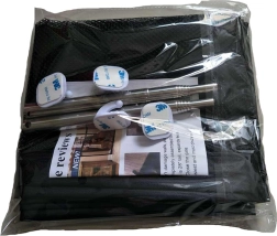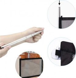 Fissare la barriera è semplice con ganci adesivi e barre telescopiche, il che consente un posizionamento rapido ed efficace senza bisogno di attrezzi.