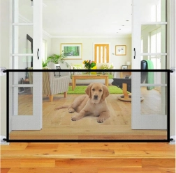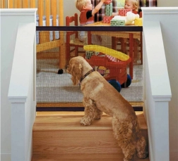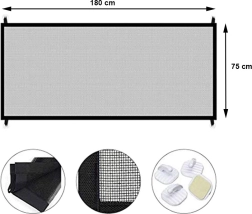 Barriera di sicurezza in rete di alta qualità che impedisce facilmente ai tuoi animali domestici di accedere a determinate aree della tua casa. Installazione e uso facili grazie a barre telescopiche e ganci adesivi.
