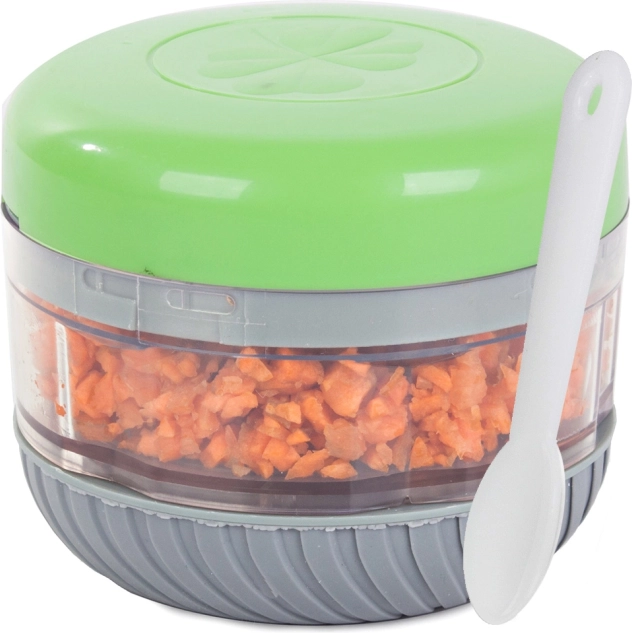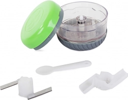 Vi presentiamo il tritatutto manuale, perfetto per l'uso in cucine con spazio limitato o durante il campeggio. Il tritatutto è dotato di due lame in acciaio inox e di un contenitore da 150 ml, che consente una lavorazione efficiente e veloce degli ingredienti. Il design ergonomico e la base in gomma garantiscono stabilità e semplicità d'uso.