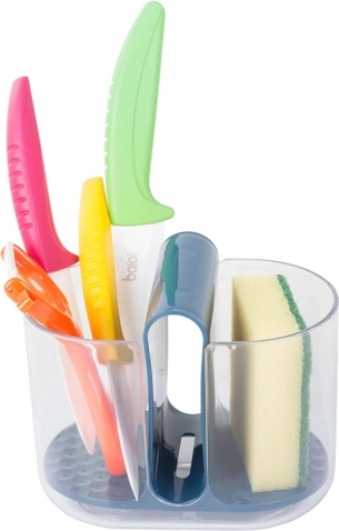 Mantieni i tuoi utensili da cucina e le posate organizzati con questo funzionale organizer da cucina per posate. È dotato di uno scomparto principale diviso in due parti, rendendo facile il raggruppamento di articoli simili durante l'asciugatura.