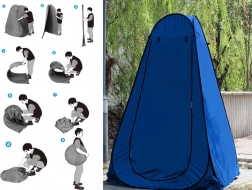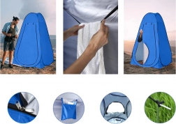 Tenda pratica e universale per avere privacy in viaggio: funge da spogliatoio, doccia e WC. È autoportante pop-up, impermeabile e, una volta ripiegata, occupa pochissimo spazio. All’interno trovi una tasca capiente, una cinghia appesa per i vestiti e una finestrella di areazione per una migliore circolazione dell’aria.