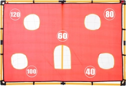 Questa grande porta da calcio con telo bersaglio rende ogni allenamento una sfida divertente. I fori numerati sul telo motivano a migliorare la precisione e permettono di organizzare gare senza la necessità del portiere. La porta è leggera, stabile e adatta a giardino, campi e ampi ambienti interni.