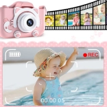 La fotocamera ha un design rosa a forma di gattino con orecchiette e zampette che cattura immediatamente l’attenzione dei bambini.