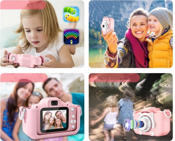 Oltre a scattare foto, il dispositivo include diversi giochi popolari come Snake, Tetris e altri, che divertono non solo i bambini ma anche gli adulti. La fotocamera è ideale come regalo per varie occasioni, tra cui compleanni e Natale.