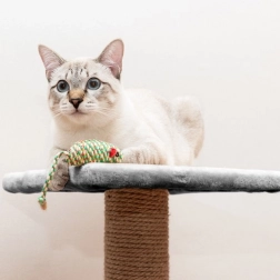 Verschillende niveaus, speeltjes en schuilplaatsen stimuleren activiteit, springen en klimmen, waardoor katten fit en gelukkig blijven.
