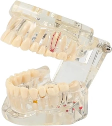 Dit tandmodel reproduceert nauwkeurig de anatomie van de menselijke kaak en tanden, wat het tot een onmisbaar hulpmiddel maakt voor studenten tandheelkunde, mondhygiënisten en praktiserende tandartsen.