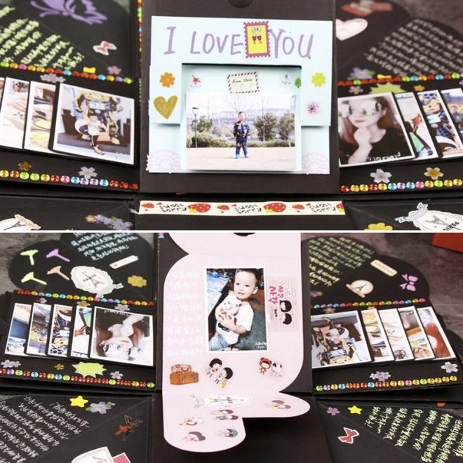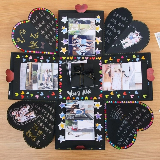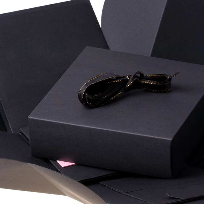 Verras je dierbaren met een uniek cadeau in de vorm van een zwarte explosie cadeauverpakking. Deze doos is een perfecte verrassing voor een bruiloft, Valentijnsdag, verloving, verjaardag of elke andere feestelijke gelegenheid. In het kleinste doosje kun je een sieraad, horloge of een ander klein geschenk plaatsen. Versier de binnenkant met foto’s, groeten of wat je maar bedenkt, en maak van dit cadeau iets onvergetelijks.