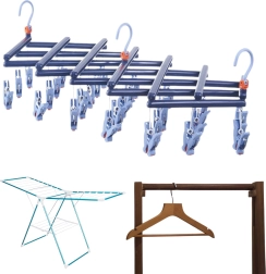 Ergonomische clips met precieze klem houden wasgoed zeker vast zonder sporen achter te laten. Het opvouwmechanisme maakt eenvoudig opbergen zelfs in kleine ruimtes mogelijk, waardoor het rek een uitstekende keuze is voor thuis, op het balkon, onderweg of tijdens het kamperen.