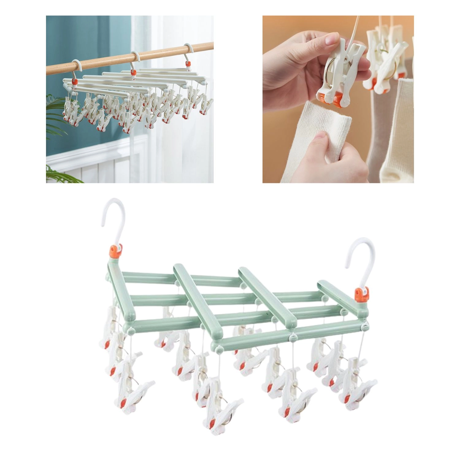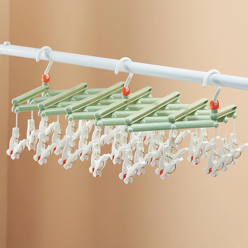 Praktische en duurzame opvouwbare washanger met 14 knijpers bespaart ruimte en zorgt voor snel drogen van klein wasgoed. Ideaal voor sokken, ondergoed en accessoires, met dubbele haken voor stabiele ophanging. Biedt een opvouwbare constructie, een draaibare haak met vergrendeling en ergonomische clips voor een veilige bevestiging.