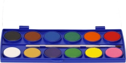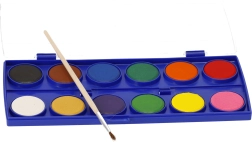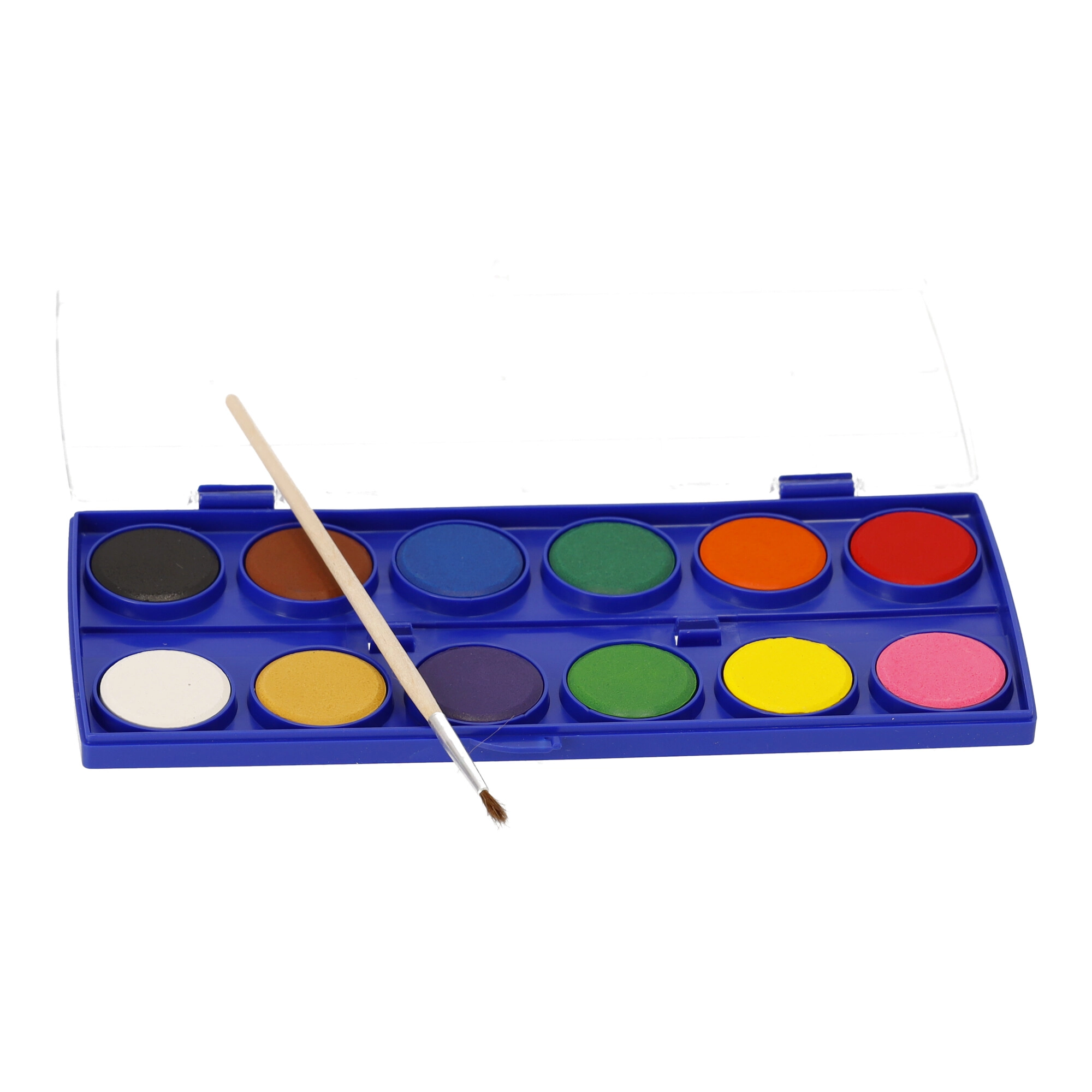 Aquarelverf is verf op waterbasis die wordt gebruikt om op papier te schilderen. Een penseel is bij de set inbegrepen.