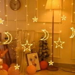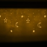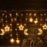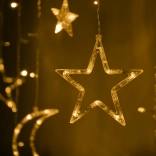 Het LED-lichtgordijn met maan- en stermotieven tovert een sprookjesachtige verlichting voor ramen, muren en balkons. De warme witte tint oogt het hele jaar door aangenaam en feestelijk – niet alleen met Kerst. In totaal 138 zuinige LED’s verdelen het licht gelijkmatig: subtiel, maar effectief.