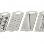 Vier verwisselbare opzetstukken voor verschillende snij- en raspmogelijkheden. Aanpasbaar voor verschillende soorten groenten en fruit.