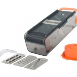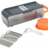 De multifunctionele snijder en rasp is ontworpen om uw dagelijks koken te vergemakkelijken. Het wordt geleverd met vier verwisselbare opzetstukken die aan verschillende behoeften in uw keuken voldoen. De transparante container met deksel maakt gemakkelijke opslag van ingrediënten in de koelkast mogelijk zonder hun versheid te verliezen.