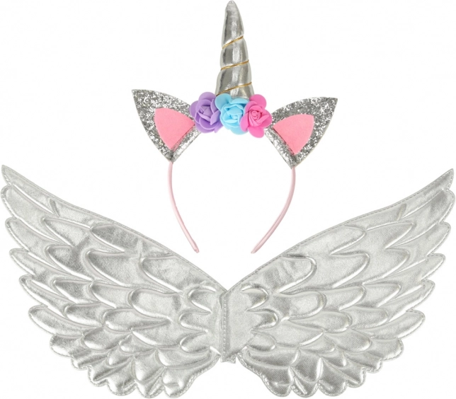 Prachtig eenhoornkostuum is de perfecte keuze voor creatief spel en carnaval. Bevat een zilveren rok, vleugels en een diadeem met hoorn, die je kind een betoverende sprookjesachtige look geeft.