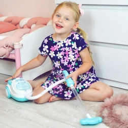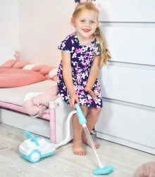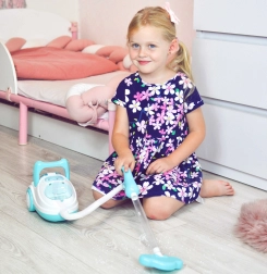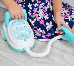 Deze blauw-witte kinderstofzuiger bootst een echt apparaat natuurgetrouw na – na het inschakelen brandt hij, maakt realistische geluiden en dankzij de zuigfunctie kan hij zelfs de meegeleverde piepschuimballetjes opzuigen. Perfect voor rollenspel, bevordert verantwoordelijkheid en leert kinderen op speelse wijze orde houden.
