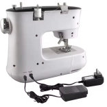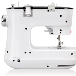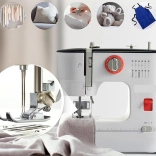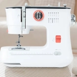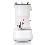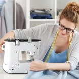 Deze witte naaimachine is klein en gemakkelijk draagbaar, ideaal voor snelle naai-aanpassingen en kleine huishoudelijke projecten.