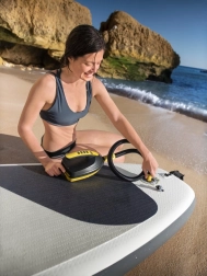 Ga zonder oponthoud naar het water. De elektrische pomp BESTWAY HYDRO-FORCE wordt gevoed via de 12V-autostekker en pompt binnen enkele minuten een paddleboard, boot en ander watersportmateriaal op. Het overzichtelijke LCD-scherm met keus uit PSI / BAR en instelling per 0,5 PSI garandeert een nauwkeurige doeldruk.
