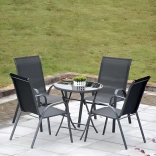 De textiel mesh, waaruit de zitting en rugleuning zijn gemaakt, is waterbestendig en snel drogend, waardoor het goed bestand is tegen regen en ochtenddauw. Anti-slip doppen beschermen de vloer tegen krassen en zorgen voor stabiliteit tijdens het zitten. Dankzij het stapelbare ontwerp bespaart u ruimte bij het opbergen als ze niet in gebruik zijn.