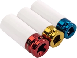 De doppen zijn gemaakt van chroom‑molybdeenstaal, wat hoge sterkte en een lange levensduur garandeert. De externe beschermmantel beschermt bovendien zowel het gereedschap als omliggende oppervlakken.