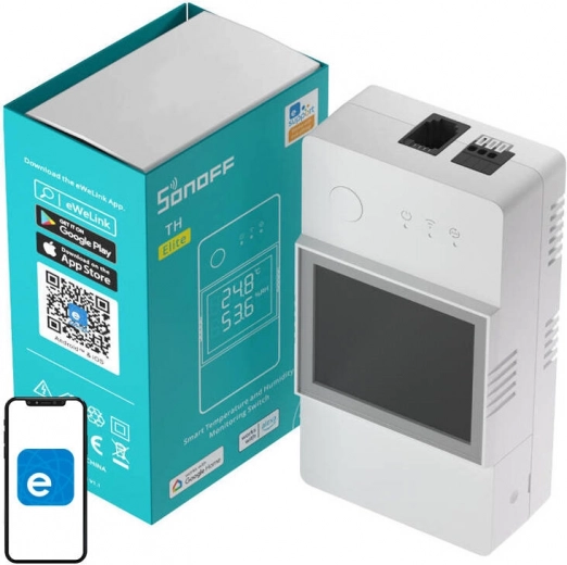 Universele slimme schakelaar met een belastbaarheid van 20 A, ideaal voor vloerverwarming, pompen, irrigatie, kassen, overdekte zwembaden, wijnkelders en terraria. Hij bewaakt temperatuur en luchtvochtigheid in realtime en schakelt aangesloten apparaten in of uit bij de ingestelde waarden. Met de eWeLink-app heb je overal controle, ook in LAN-modus zonder internet.