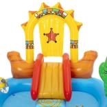 Geniet volop van de zomer met het thematische Bestway Wild West watercentrum. Het kleurrijke design, de veilige constructie en doordachte extra’s garanderen uren actieve buitenpret. De geïntegreerde sprinkler sluit je direct aan op de tuinslang en voor comfortabel glijden zorgt het opblaasbare kussen in de bodem.