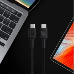 Duurzame gevlochten USB‑C ↔ USB‑C kabel van GREENCELL met ondersteuning voor Power Delivery 60 W, Quick Charge 3.0 en gegevensoverdracht tot 480 Mb/s. Ideaal voor smartphones, tablets en laptops met USB‑C. Versterkte metalen connectoren, kevlarvezels en meerlaagse afscherming zorgen voor maximale levensduur en veilig snel opladen thuis en onderweg.