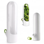 Houd kruiden langer dan ooit tevoren vers, knapperig en aromatisch. Deze slimme container werkt volgens een eenvoudig principe: de stelen van de kruiden staan in water, waardoor ze gehydrateerd blijven en niet verleppen. Het transparante deel van de container maakt het gemakkelijk om de inhoud en het waterniveau te controleren, terwijl de siliconen stop ongewenst morsen voorkomt.