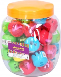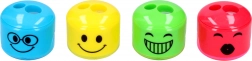 Praktische en speelse puntenslijper voor twee potloden met ingebouwd reservoir zorgt voor schoon en snel slijpen zonder rommel. Dankzij het gezichtsmotief en het compacte formaat is hij ideaal voor school en kantoor. Verkrijgbaar in 4 kleuropties en geschikt voor standaard en dunnere potloden.