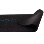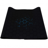 Fijn geweven textiel verbetert de tracking van optische en lasersensoren en biedt de ideale balans tussen snelheid en controle. Het stijlvolle “honingraat”-patroon in zwart‑blauwe uitvoering beschermt tegelijkertijd het tafelblad tegen krassen en slijtage.
