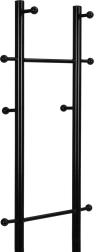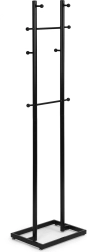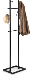 Orde binnen handbereik. Deze moderne staande kapstok in matzwart past perfect in elke hal, kleedruimte of kantoor. Poedergecoat metaal zorgt voor krasbestendigheid en een lange levensduur, terwijl de doordachte plaatsing van 8 haken op verschillende hoogtes comfortabel plaats biedt aan mantels, jassen, tassen en hoeden.
