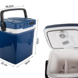 Deze ruime thermo-elektrische reiskoelbox combineert koelen en verwarmen, zodat u hem zowel in de zomer als in de winter gebruikt. Onder voeding houdt hij de inhoud tot circa 8–10 °C koeler dan de omgeving (bij 25 °C omgeving tot -8 °C ten opzichte van de omgeving) en in de verwarmingsmodus kan hij etenswaren verwarmen tot 50–65 °C. Een uitstekende oplossing voor drankjes, snacks en kant-en-klare maaltijden onderweg.