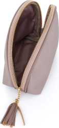 Ontdek de praktische oplossing voor je kleinere cosmetica met de ronde reiscosmetictas PLUS. Deze tas, gemaakt van hoogwaardig leer in de moderne kleur mocca, combineert stijl en functionaliteit in één: