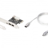 - PCIe FireWire-controller, standaard en low-profile afdekplaat