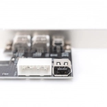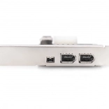 Twee externe aansluitingen maken directe aansluiting van randapparatuur mogelijk, terwijl de interne connector kan worden gebruikt voor het frontpaneel of interne FireWire-apparaten. De geïntegreerde 4‑pins voedingsaansluiting levert extra vermogen aan de poorten voor energie-intensieve randapparatuur.