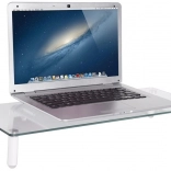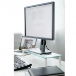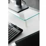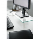 Glazen monitorstandaard stelt u in staat uw monitor in een ergonomische positie te plaatsen en tegelijkertijd meer ruimte op uw bureau te creëren. Dankzij het geharde veiligheidsglas en de antislip voetjes blijft de monitor stabiel.