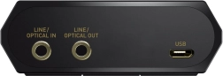 - Line/Optical In, Line/Optical Out, USB, hoofdtelefoonuitgang, microfooningang