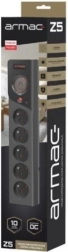 De moderne en kwalitatieve overspannings-stekkerdoos ARMAC Z5 beschermt pc’s, randapparatuur, tv/av en multimedia tegen gevaarlijke spanningspieken. Biedt 5 geaarde stopcontacten, een automatische zekering 10 A, een varistor met responstijd < 25 ns, kinderveiligheid Child Protection en slimme kabelgeleiding Free Cord. De elegante tweepolige schakelaar Quick Switch met subtiele blauwe verlichting zorgt voor comfortabel gebruik.