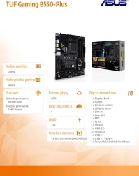 Bouw een gaming-pc zonder compromissen met het ASUS TUF Gaming B550-PLUS moederbord. Het biedt een AM4-socket voor AMD Ryzen-processors, snelle M.2 NVMe opslag, moderne PCIe-connectiviteit, hoogwaardig geluid en 2.5G Ethernet voor soepel online gamen. De robuuste TUF-constructie, eenvoudige beheermogelijkheden via Armoury Crate en RGB-verlichting zorgen voor betrouwbare prestaties én stijl.