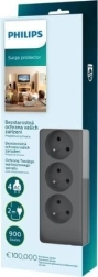 Philips overspanningsbeveiligde stekkerdoos 2 m, 4 stopcontacten, grijs